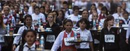 阿根廷舉行餐廳服務(wù)員“端盤子競走比賽”