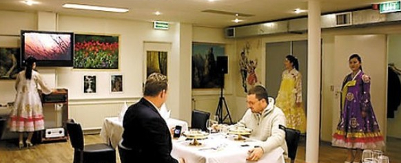 據(jù)報(bào)道,由荷蘭企業(yè)家同朝方合作開(kāi)辦的這家餐廳正式名稱(chēng)為“阿姆斯特丹平壤海棠花餐館”。該餐館9名工作人員都是朝鮮人,包括總經(jīng)理韓明姬和4名廚師。餐館里懸掛著幾幅朝鮮畫(huà)家的畫(huà)作。