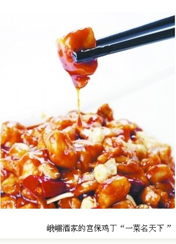 據(jù)介紹,“峨嵋川菜”的主要特點(diǎn)是:根據(jù)當(dāng)?shù)貍鹘y(tǒng)手法,結(jié)合北京人飲食習(xí)俗、口味需求而調(diào)整和創(chuàng)新的川菜。因菜式以味見(jiàn)長(zhǎng),所以受到顧客的追捧。就拿最具代表性的“宮保雞丁”來(lái)說(shuō),盡管原料普通,但做法平中見(jiàn)奇,特別是酸甜混合味道的“小荔枝口”,降低了傳統(tǒng)川菜中的辣味,增大了酸甜味,成菜上桌五味迭出,先甜后微酸、略有椒香、咸鮮還稍帶點(diǎn)麻口,最講究的是菜肴食盡后盤中“只見(jiàn)紅油不見(jiàn)汁”,這就是峨嵋酒家在北京獨(dú)創(chuàng)的“散籽吐油”法。