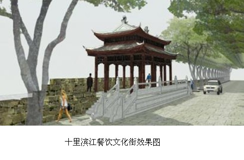 同時,十里濱江餐飲文化街,還將引入包括國家地理標志保護產品資中球溪鯰魚在內的本土餐飲文化品牌,引進一線城市的品牌咖啡店、影院等娛樂場所,依照古韻風格,將濱江路的休閑文化提檔升級。工程建成后,將成為集城市交通、城市防洪、城市景觀、城市文化、城市休閑五位一體的城市景觀大道。