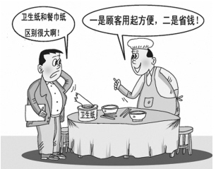 有破洞、容易爛、還會掉白渣,這樣的餐巾紙你還敢用嗎?而有些餐廳為了節省成本甚至用廁用紙冒充餐巾紙,這樣的所謂餐巾紙可真夠讓人倒胃口的。俗話說,病從口入,既然已經發現了問題,監管部門就應該及時處理,生產企業更應該認真反思、認真解決問題,提升產品質量,保護消費者的健康安全。