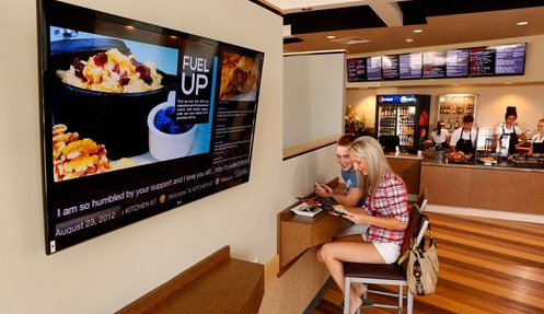 通過(guò)數(shù)字標(biāo)牌系統(tǒng)的構(gòu)建,餐廳就可以把主打菜品通過(guò)大屏幕靈活生動(dòng)的展現(xiàn)出來(lái),試問(wèn)在“跟著感覺(jué)走”的點(diǎn)餐過(guò)程中,顧客怎么會(huì)對(duì)大屏幕顯示中播放的熱騰騰、香噴噴的美味佳肴視而不見呢?而且,店內(nèi)的數(shù)字標(biāo)牌網(wǎng)絡(luò)還可與時(shí)下熱門的社交媒體,如微博、微信等,打造出美食討論圈,對(duì)顧客發(fā)布的相關(guān)美食信息、餐廳評(píng)論實(shí)時(shí)追蹤、展示,讓餐廳與“微博控”、“微信控”們保持互動(dòng),從而對(duì)顧客消費(fèi)習(xí)慣進(jìn)行輿論引導(dǎo),提高菜品的推廣效率。