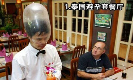 在泰國這家餐廳居然以安全套為主題,不免會臉紅心跳。放眼望去,餐廳內皆是安全套,即使是菜品的名稱也與它有關。超有情趣的室內裝潢,再加上泰國地道的風味美食,使得這家特色餐廳成為了一道靚麗的風景。此外,吃完飯后,服務員送上的并不是薄荷糖,而是一枚安全套! 真是讓你想不到!