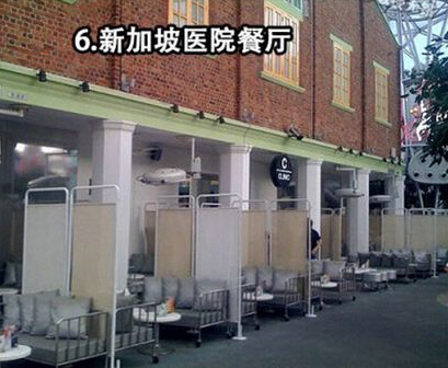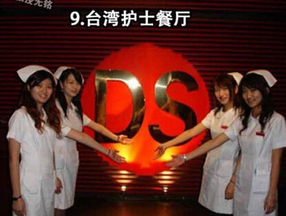臺灣有家主題餐廳經營風格另類,服務生穿上護士服,餐桌上還有提供飲料的“點滴”。進入餐廳后,客人甚至可以要求坐在輪椅上,請服務生幫忙推進去。餐廳內墻壁上掛X光片、視力測量表,飲料則在點滴瓶內。另有試管飲料,由服務生推著“護理推車”,用針筒把“試管酒”飲料“注射”到消費者嘴巴里。