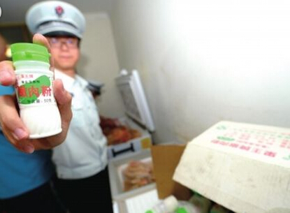在牛某的房間內,執法人員找到數瓶嫩肉粉,這種嫩肉粉標簽上說明為:每500克(1斤)加5克。但牛某承認,他都是隨意添加,沒有固定用量。