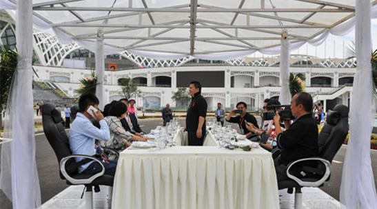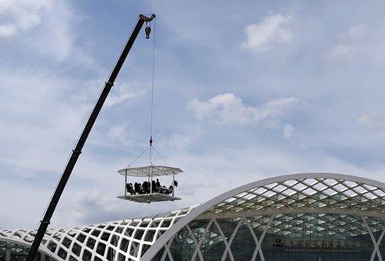 據聞,“空中餐廳”四周不設圍欄,享受餐飲服務的價格為每位8888元?吹健翱罩胁蛷d”被起重機吊著緩緩升空,不少圍觀市民嘖嘖稱奇,紛紛舉起相機、手機拍照留念,并感嘆:“這是用生命在吃飯呀!”、“這吃的不是飯,而是刺激體驗!”。