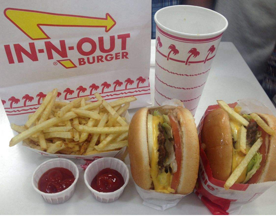 因為兩人精力有限,所以菜單簡單的不會犯選擇困難癥。菜單上只有三種漢堡:普通漢堡、芝士漢堡、雙層漢堡,加上薯條、奶昔和幾種飲料,菜單70年來幾乎沒變化。分店之所以大部分在加州,因為離兩個總后勤近,美國其他地方都嫌遠,表說走出美國走向世界了。