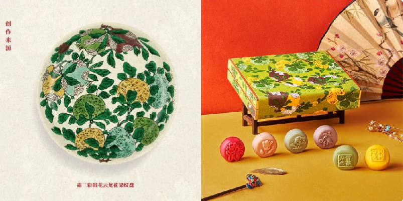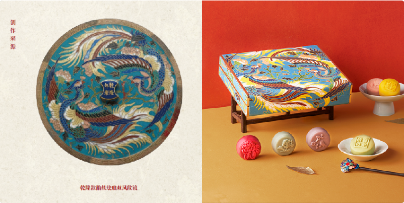 月餅設(shè)計從古董瓷器、掐絲琺瑯、宋徽宗喜愛的字畫等文物中獲得靈感,將傳統(tǒng)文化融入月餅之中。